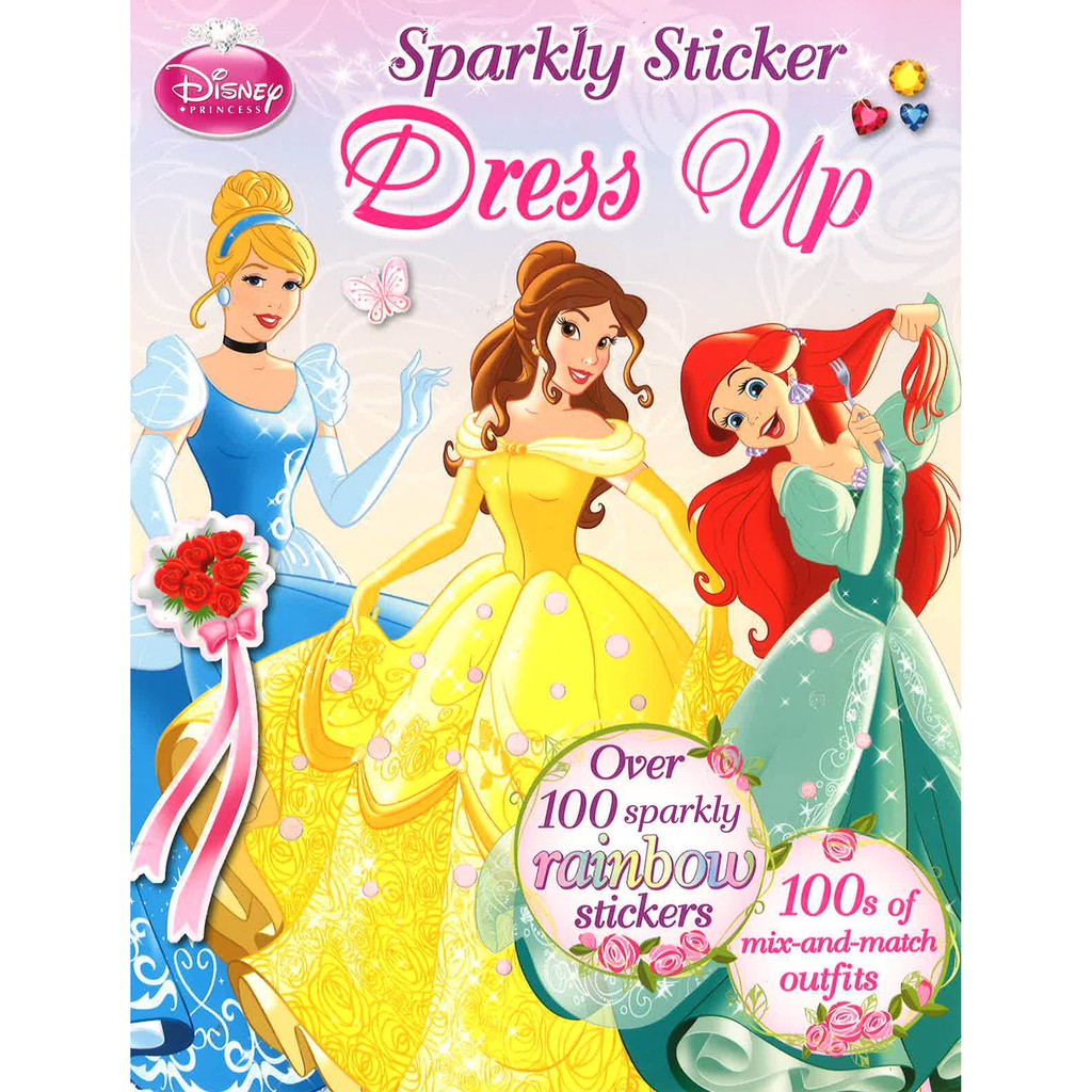 Disney Princess Sparkly Sticker Dress Up Buku English Murah Shopee Malaysia